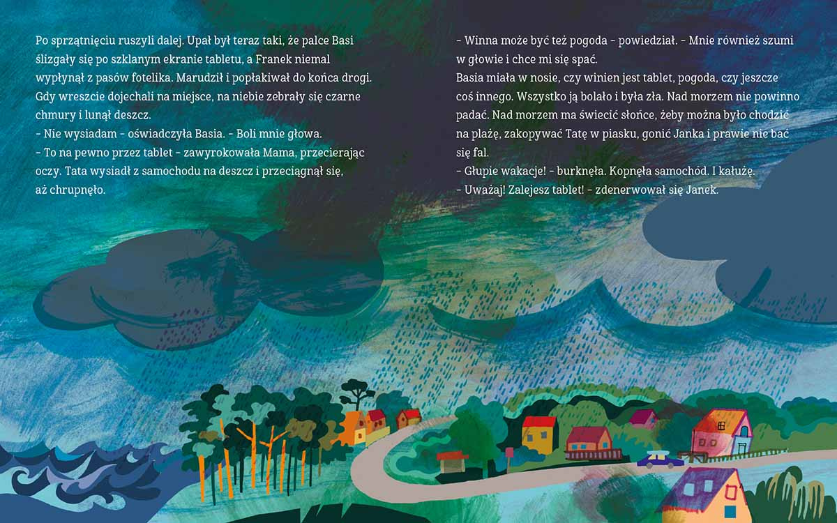 Kolejna opowieść o przygodach Basi i jej rodziny! Janek dostał od kuzyna tablet. Okazało się, że ma on coś wspólnego z żelkami – bardzo trudno się od niego oderwać. I łatwo się o niego pokłócić, bo Basia też chciałaby pograć. Mama się denerwuje, że dzieci się uzależnią, Tata trochę tłumaczy, ale okazuje się, że jeśli chodzi o tablet, nic nie jest całkiem proste. Bo jak to w końcu jest z tym tabletem? Jest dobry lub zły? Da się bez niego żyć? Czy można go dobrze wykorzystać?