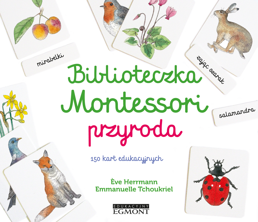 Zestaw 150 kart edukacyjnych wzbogacających słownictwo dziecka z zakresu przyrody i przygotowujących do czytania.