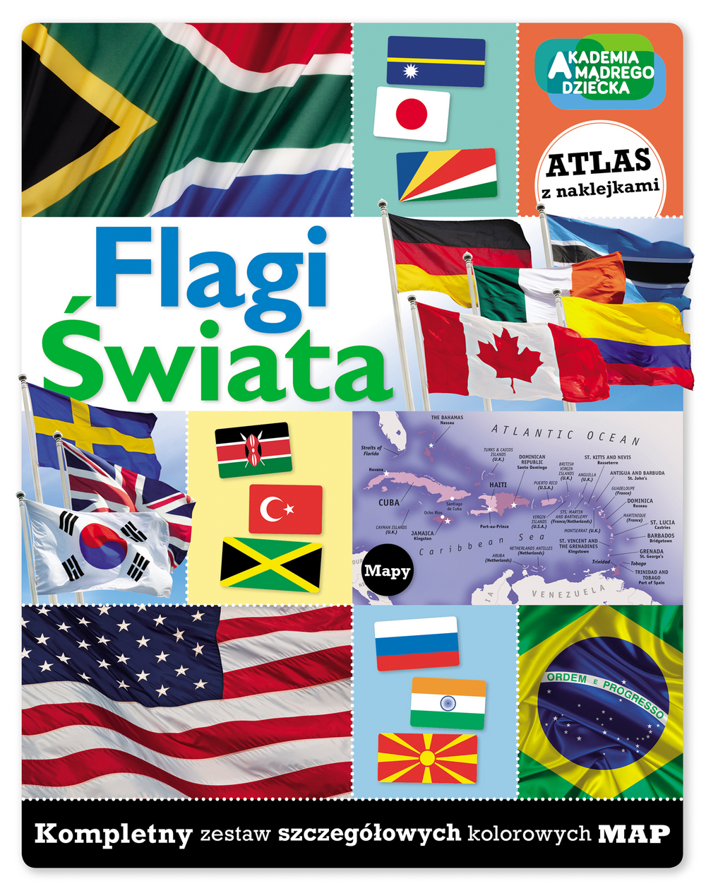 W książce znajdziesz zestaw szczegółowych kolorowych map i 197 naklejek z flagami.