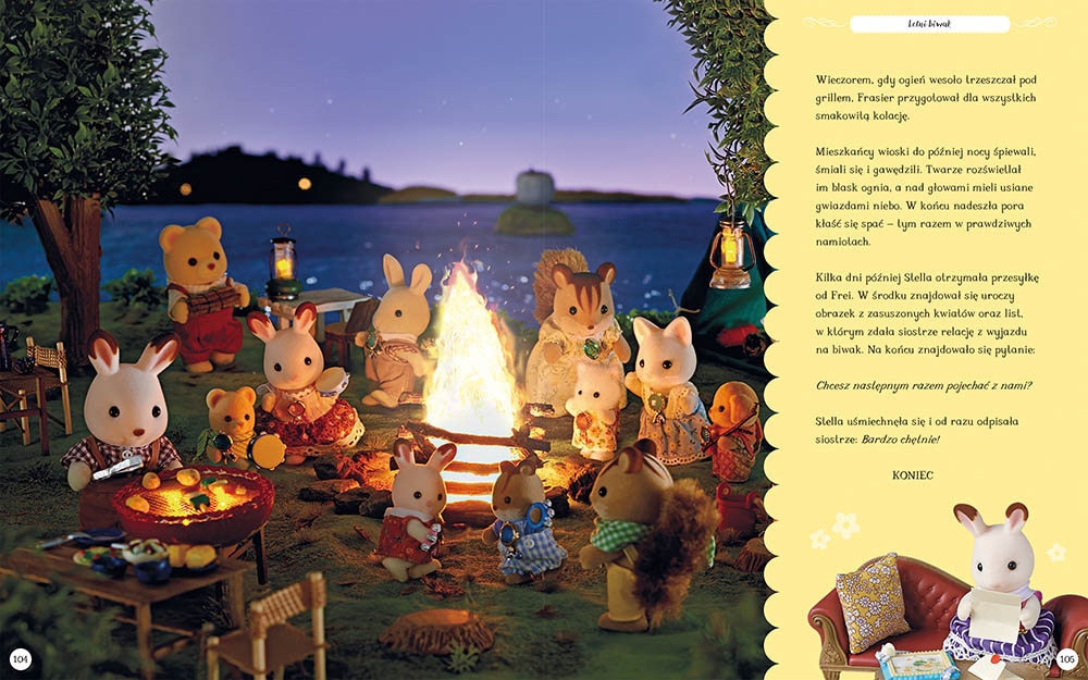 Tuż pod lasem, pośród zielonych pagórków, leży Sylvanian Village – magiczne miejsce, w którym przyjaciele i rodziny żyją razem w harmonii, miłości i w zgodzie z naturą. Dołącz do uroczych bohaterów i wybierz się z nimi na pokaz baletowy, wizytę w Zamku Syrenek albo nad Lśniące Jezioro. Przekonaj się, kto jest prawdziwym mistrzem pływackim krainy i pomóż siostrzyczce Freyi szukać zaginionej tiary. Sprawdź, czy marzenia zapisane przez bohaterów w Księdze Życzeń rzeczywiście się spełnią, i dotrzymaj towarzystwa przyjaciołom, którzy, nie bez przeszkód, wybierają się na letni piknik. W tej niezwykłej, pięknie wydanej książce znajdziesz aż 15 opowieści z Krainy Sylvanian. Zostały napisane prostym, przyjaznym dla maluchów językiem. Doskonałej jakości ilustracje są pełne ciepła i radości, pozwalają poczuć się częścią historii i pełnego uroku świata. Treści zawarte w opowiadaniach są bezpieczne dla dzieci i pełne wartości takich jak przyjaźń, rodzina, życzliwość, współpraca i koleżeństwo. Wszystkie dobrze się kończą, a każda z nich to idealny pomysł na spokojną, wieczorną lub poranną lekturę. Księga opowieści Sylvanian Families sprawdzi się także jako prezent. Piękne wydanie, błyszczące elementy na okładce i duży format sprawią, że będzie wspaniałym upominkiem na różne okazje.